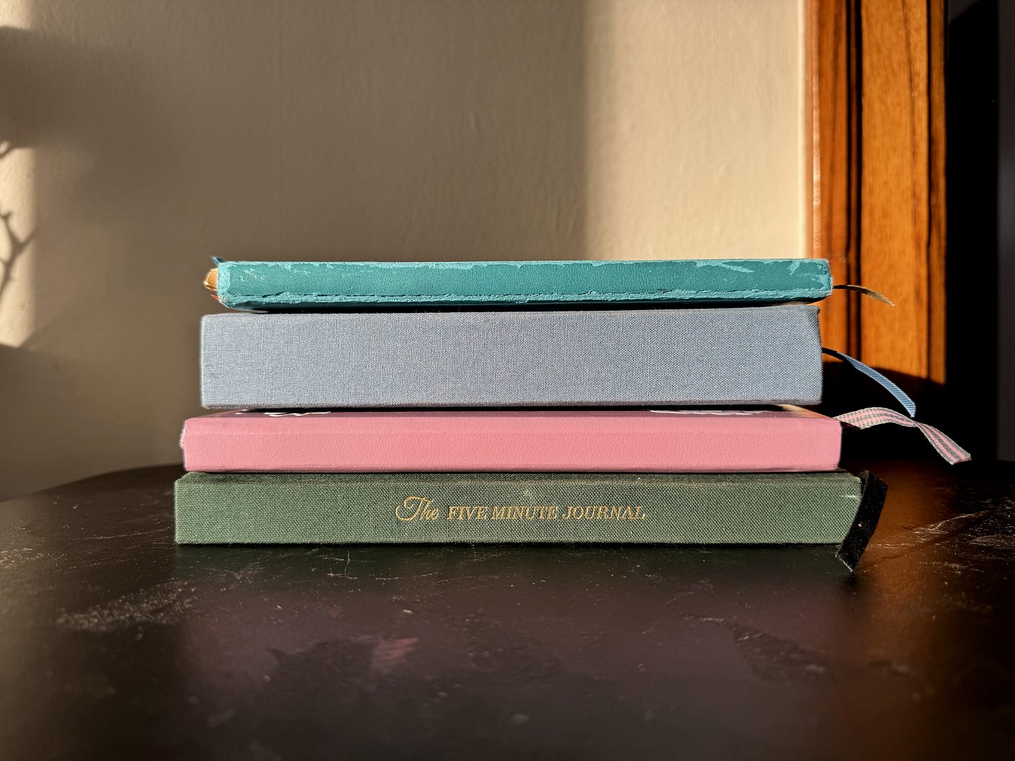 I currently have four active journals. A single journal just can’t contain me. One catches memories, one plans the future, one holds the art of life, and one holds gratitude for it all.